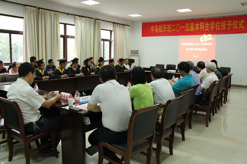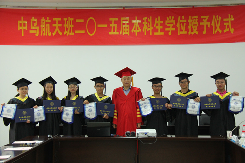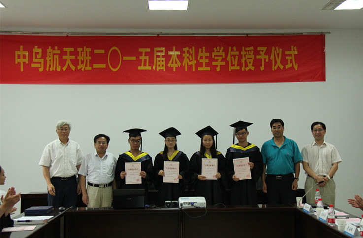 7月3日下午,我校中乌航天班2015届本科生毕业典礼暨学位授予仪式在明故宫校区A3-318会议室举行。学校教务处处长王成华、国际合作交流处处长金泉元、国际教育学院院长何宁、宣传部副部长孔令华、研究生院副院长王亚彤、学生处副处长许爱华等职能部门领导以及Betway·必威(西汉姆联)院长陈卫东、党委书记季海群、副院长王海涛出席仪式,中乌航天班2015届毕业生以及2013级中乌航天班部分同学参加了仪式。仪式由Betway·必威(西汉姆联)党委副书记李和新主持。