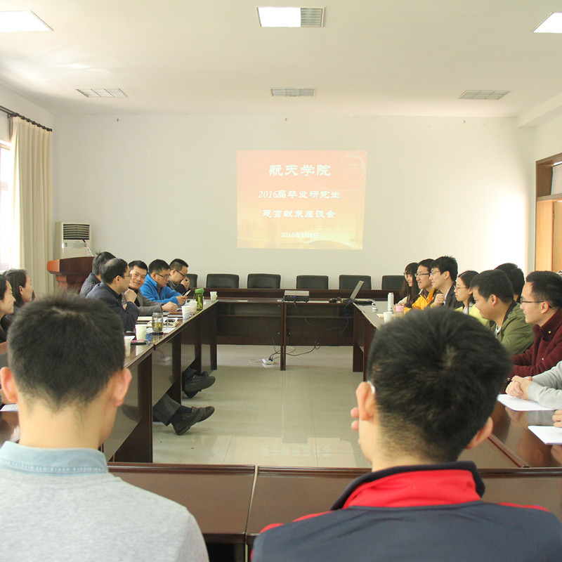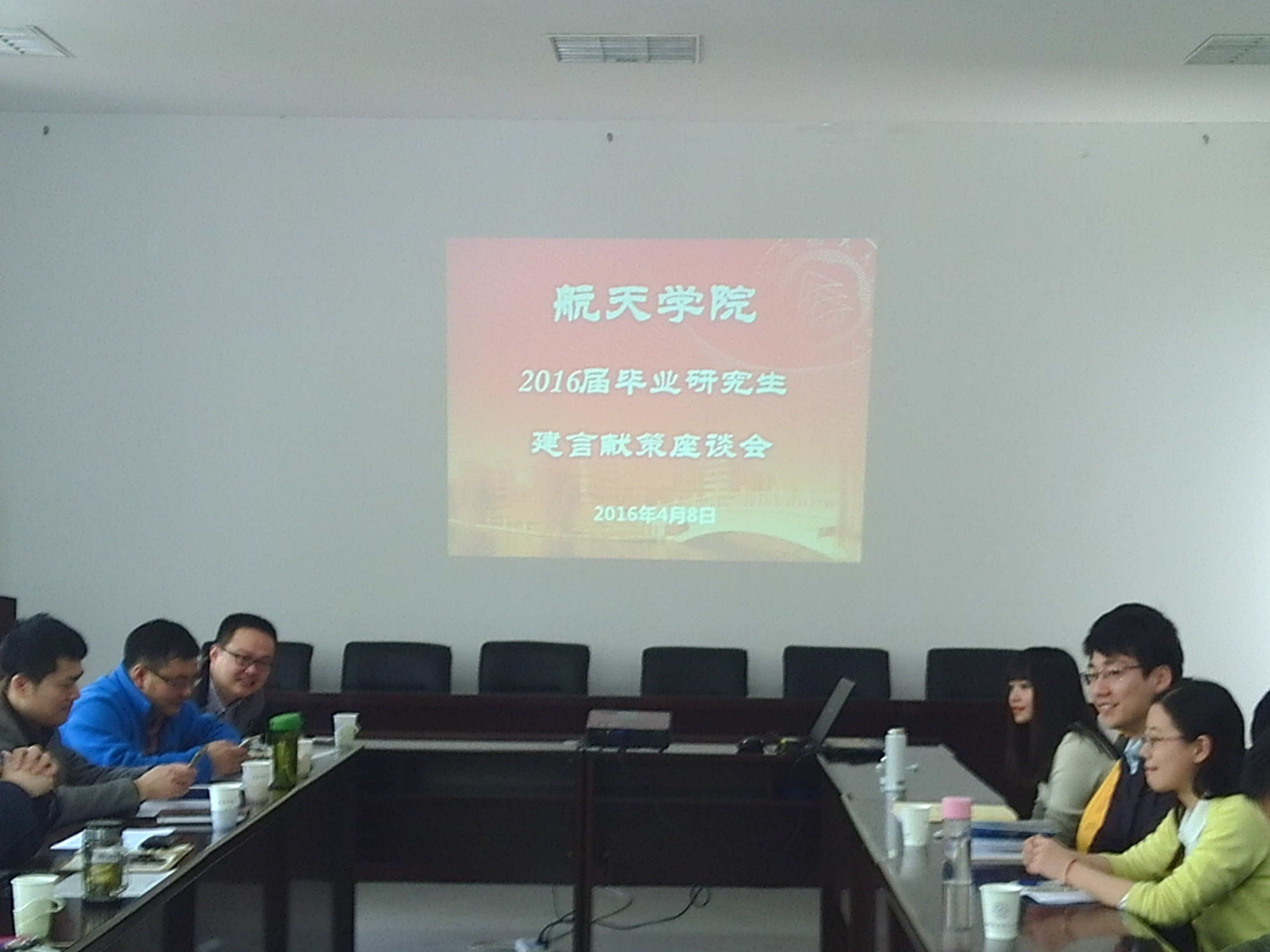 话离别,情系母校恩;谋发展,共筑航天梦。4月8日上午,Betway·必威(西汉姆联)在明故宫校区A3-318会议室召开2016届毕业研究生建言献策座谈会。Betway·必威(西汉姆联)党委书记季海群、副院长于敏、航天控制系都延丽、信息系孔繁锵、空间系全荣辉、微小卫星工程技术研究中心康国华、吴云华以及2016届毕业研究生代表参加了本次建言献策座谈会。座谈会由学院研究生辅导员管永星主持。