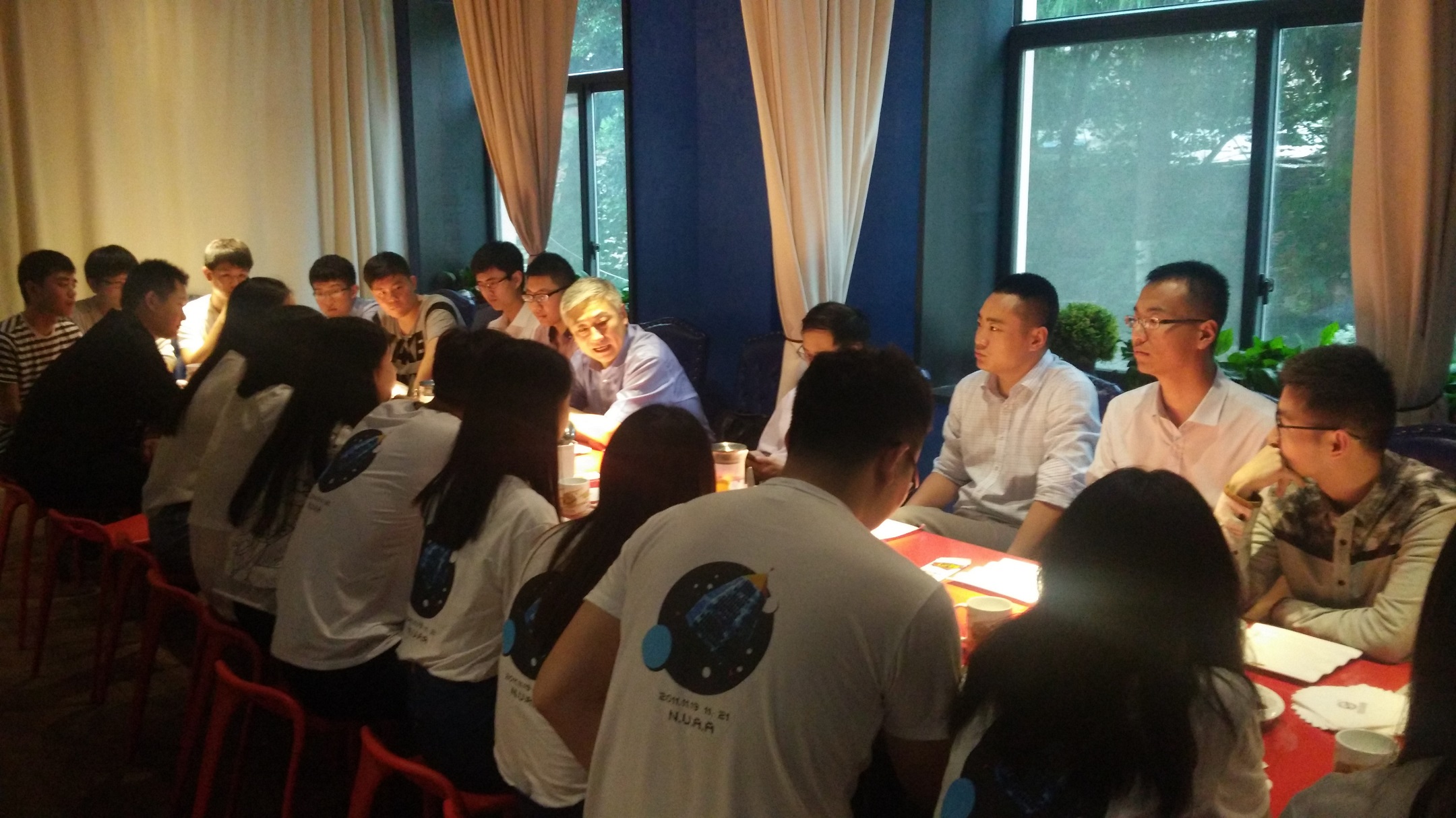 2016年6月7日晚上,适逢2016届毕业生即将奔向新起点之际,Betway·必威(西汉姆联)在南航奶酪时光店内举行了“院长书记有约”的茶话会活动,院长陈卫东、党委书记季海群、党委副书记李和新出席,与辅导员徐伟证和21位学生代表畅聊学生个人成长,共话学院发展规划,一起抒发航天人的情怀。