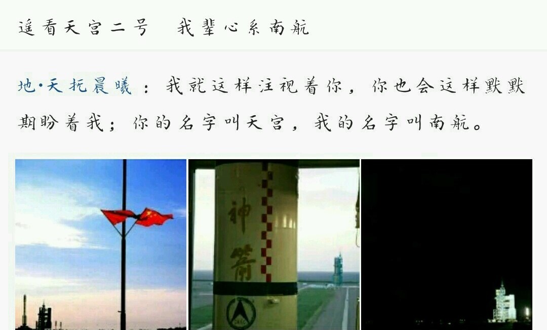 约575秒后,天宫二号与火箭成功分离,进入预定轨道,发射取得圆满成功, 空间实验室飞行任务总指挥长张又侠适时宣布:“天宫二号”空间实验室发射任务取得圆满成功!这标志着中国航天事业再次向前迈了一大步。直播结束后的同学纷纷在朋友圈发表自己对天宫二号成功发射的感慨,以及自己身为航天学子的骄傲。