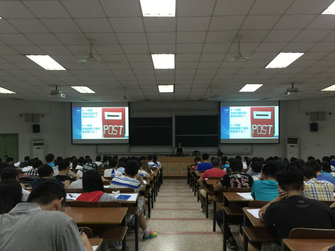 宣讲会开始,刘洁老师带大家回顾了去年一年来大家的表现、收获与不足,对延长学年的同学进行了教育,给他们敲响了警钟,同时也对表现优异的同学进了表扬。接下来,刘洁老师让在场的15级学生拆开了一年前写给自己的一封信,同学们看到自己当初定下的目标,有些人感到惭愧,也有些同学感到满足。然后,刘洁老师为大家介绍了一下近来比较热的就业话题,以两个实例激励大家好好学习,在学业、科研以及其他方面充实自己,在一年之后能够有足够的积淀,能够找到一份令人满意的工作。接下来,刘洁老师向大家说明了我院徐睿涵同学的身体状况,并希望大家都能够注意身体,规律生活,加强锻炼,不熬夜、不沉迷游戏。