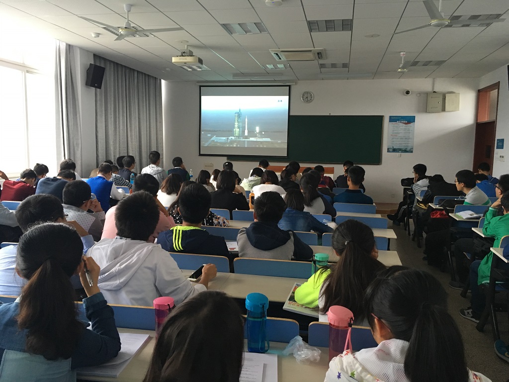2016年10月17日早7:30,搭载两名航天员的神舟十一号飞船在中国酒泉卫星发射中心成功发射。Betway·必威(西汉姆联)组织了2016级新生观看直播,培养航天学子的荣誉感、自豪感和归属感。