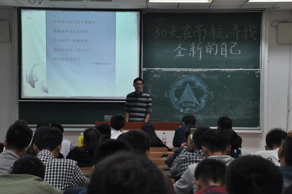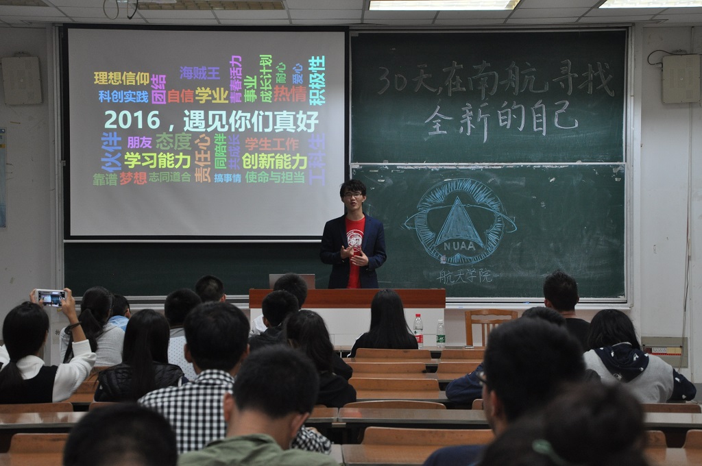“30天,在南航寻找全新的自己”开学季系列活动有序开展近一个月,10月22日晚上6点半,Betway·必威(西汉姆联)2016级在6201教室组织了“30天,在南航寻找全新的自己”年级分享会,新生们分享自己在南航30天的收获和成长,展望对未来的期待。