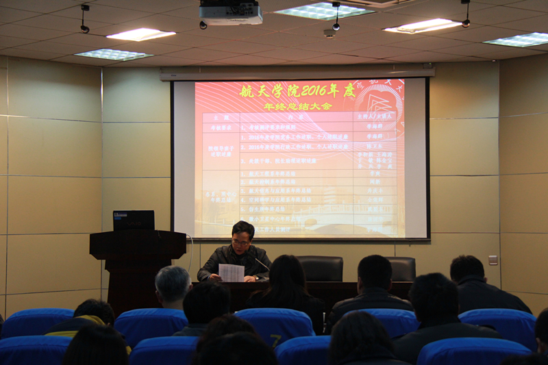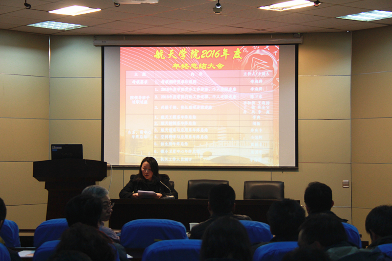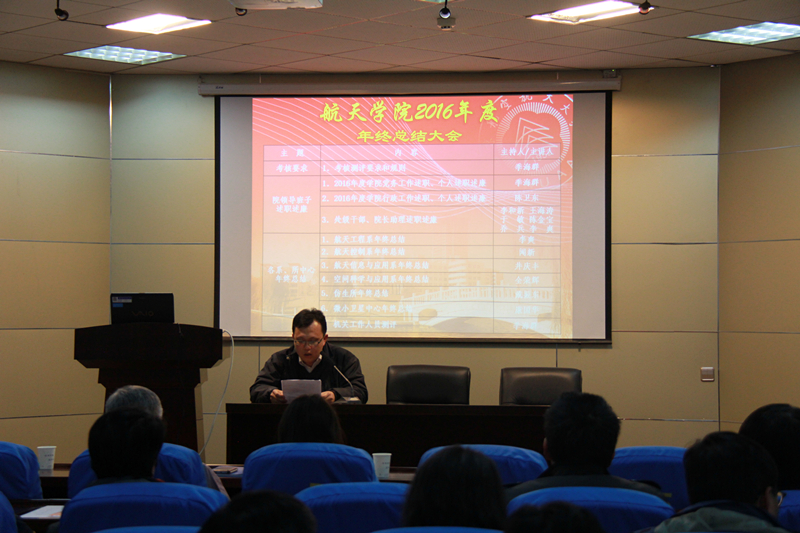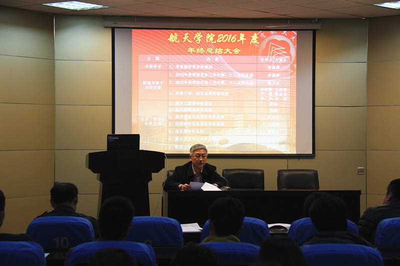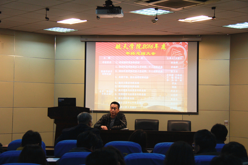 会议最后,航天工程系、航天控制系、航天信息与应用系、空间科学与应用系、仿生结构与材料防护研究所、微小卫星研究中心等六个系所中心负责人分别代表自己所在部门做本年度工作总结。