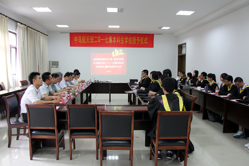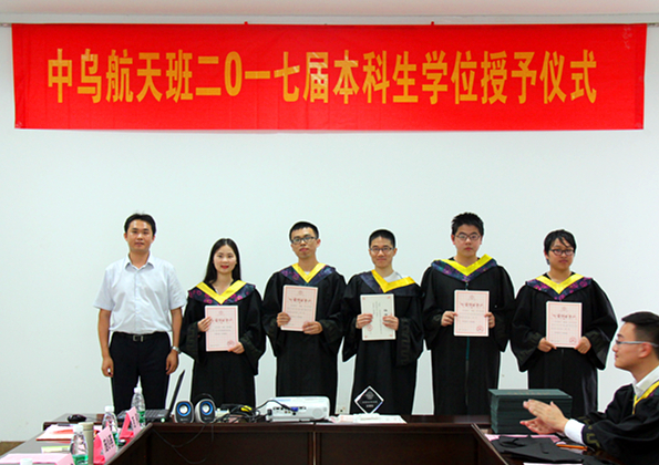 7月1日下午,我校中乌航天班2017届本科生毕业典礼暨学位授予仪式在明故宫校区A3-318会议室举行。学生处处长侍旭、党委宣传部副部长孔令华、国际合作处综合事务科科长陈峰等职能部门领导以及Betway·必威(西汉姆联)院长陈卫东、学院党委书记季海群、学院学生辅导员范伟出席仪式,中乌航天班2017届全体毕业生参加了仪式。仪式由Betway·必威(西汉姆联)党委副书记庞小燕主持。