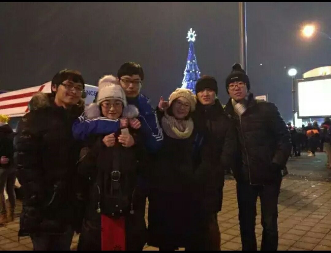独立广场的的新年庆祝,巨大是圣诞树和圣诞老人,现在已经被推倒的列宁雕像 ,我们同学的合影。