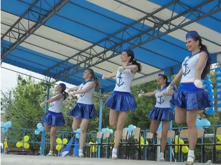 乌克兰的美女们欢快地跳着啦啦操,为校庆晚会开场!