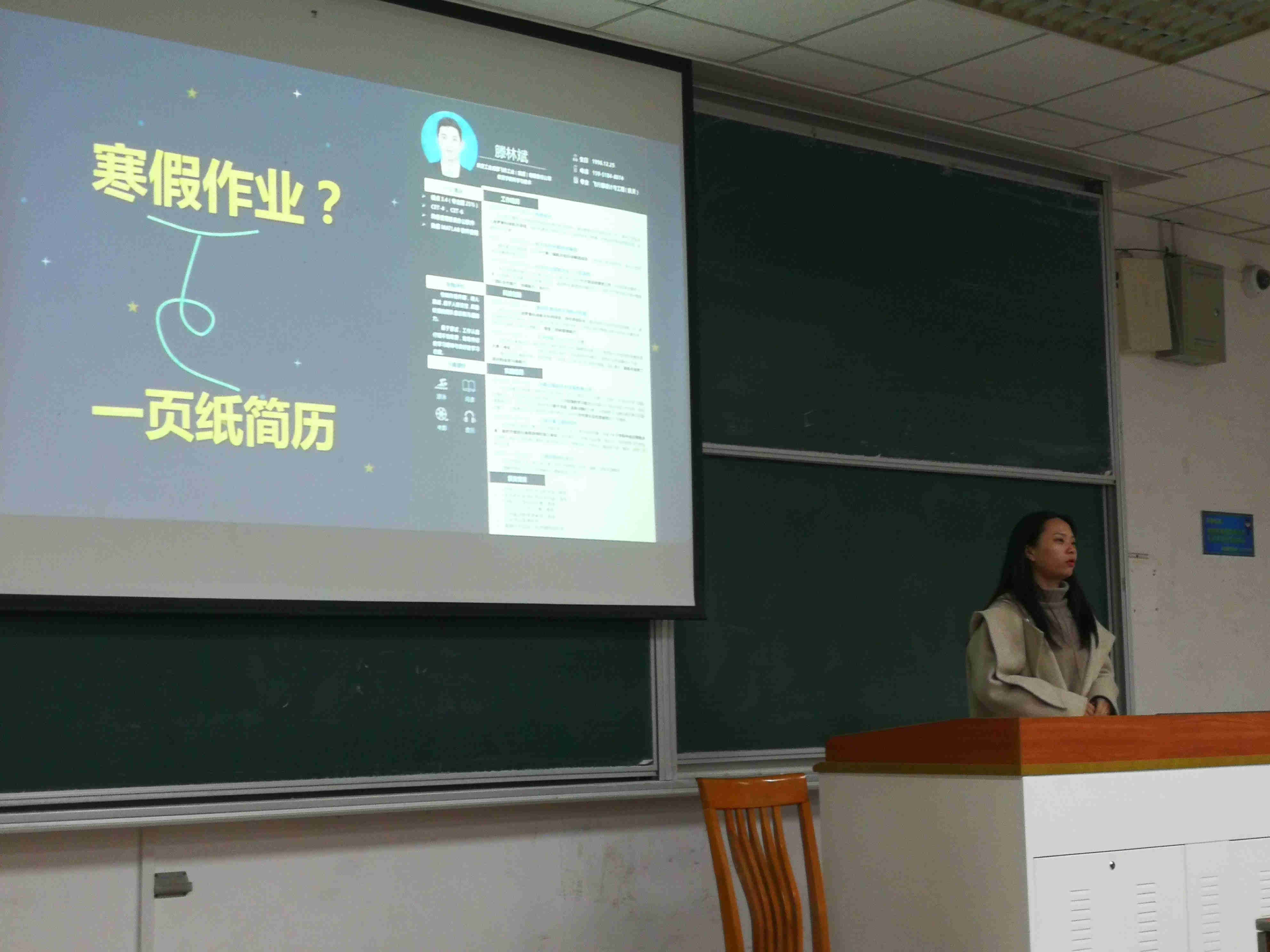 最后,刘洁老师希望所有同学都能在大学里发现不一样的自己,都能得到提升和锻炼。她向大家布置了一项寒假作业,认真准备一份简历,并重新审视自己。