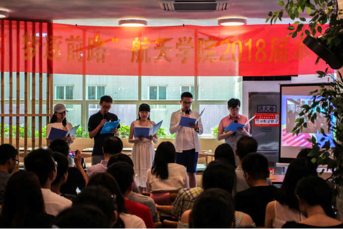 接下来开展了诗朗诵环节,每个毕业班派出一名代表,朗诵Betway·必威(西汉姆联)学子自己创作的诗。第一次走进校园,第一次看到直升机,第一次打靶,第一次考试挂科,第一次独自去医院,伴随着优美的文字,往事一幕幕展现在大屏幕上,勾起了大家的共同记忆。来自五湖四海的一群人相聚在南航Betway·必威(西汉姆联),一起做了这么多事情,本身就是一件很值得怀念的事。