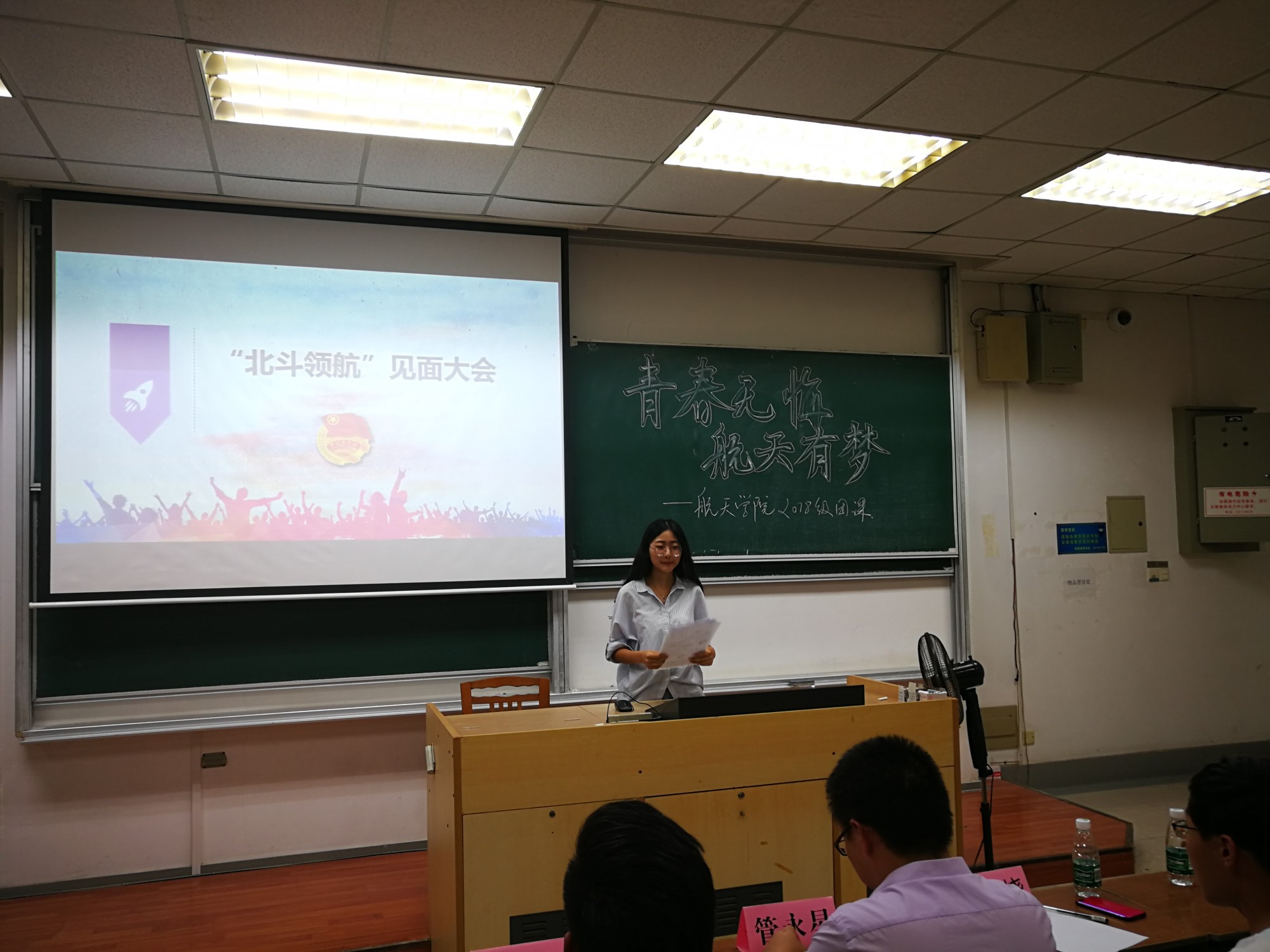 9月4日晚,Betway·必威(西汉姆联)团委在将军路校区举行“青春无悔,航天有梦”2018级新生主题团课。学院团委书记管永星、2018级辅导员刘盛,2018级全体新生以及学院“北斗领航”计划成员参加活动。