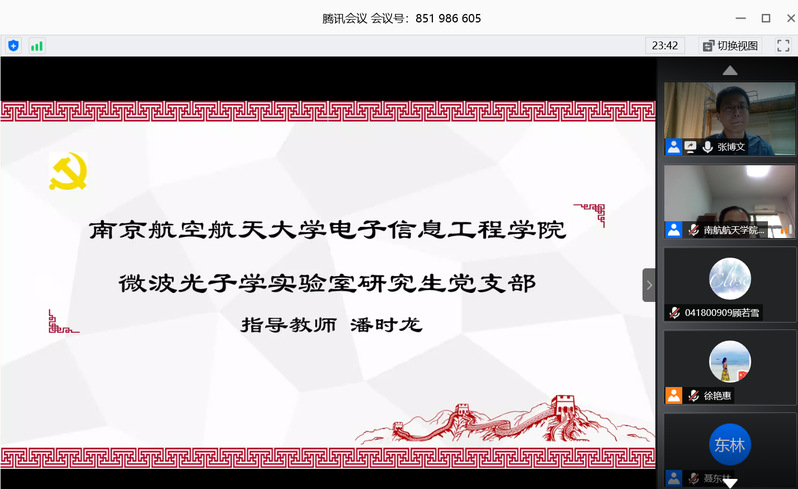 活动伊始,电子信息工程学院微波光子学纵向党支部指导教师潘时龙介绍了党支部相关情况以及指导支部建设的心得。作为信息时代的高层次人才培养基地,学院一直致力于以一流的党建和思想政治工作引领学生成长成才,为社会主义中国培养担当重任的时代新人。在两年的时间里,指导纵向团支部秉承着以理论为中心,打造学习型党支部;以共建为特色,建设开放型党支部;以科研为重心,促进成长成才需求;以纵向为基础,创建传帮带新模式的理念,举办各项特色活动,取得了丰硕的成果,实现了党建和科研的互相促进。微波光子学纵向党支部希望和与会的两个党支部一道,协同发展,共同进步,实现“共建促党建,党建助科研”。随后,Betway·必威(西汉姆联)本科生联合党支部指导教师刘盛介绍了Betway·必威(西汉姆联)本科生党建工作开展情况。Betway·必威(西汉姆联)旨在培养具有扎实的航天专业知识、强烈的事业心和使命感、宽广的国际化视野和较强国际竞争力的航天高素质创新人才。Betway·必威(西汉姆联)本科生联合党支部以打造“学习型、服务型、创新型”的党支部为目标,在疫情期间仍然开展了多项线上活动,积极推动党支部建设。接下来,清华大学研工组组长李懋坤介绍了电子工程系光电研究生党支部的相关情况。党支部以提高支部成员自主科研能力为目标,运用多样化的党建形式,开展了理论学习、知识竞赛、志愿服务等多项活动,强化思政教育。作为“红色工程师的摇篮”,清华大学的党建工作在全国高校中独树一帜,为社会输送了一批又一批怀揣远大理想信念的高层次人才。