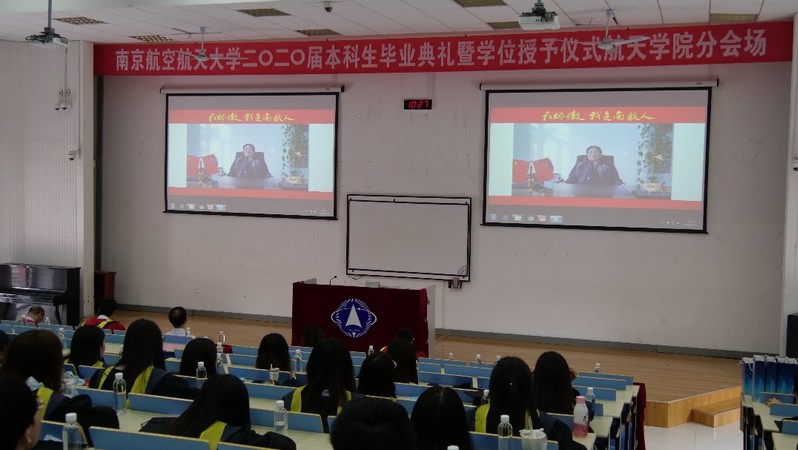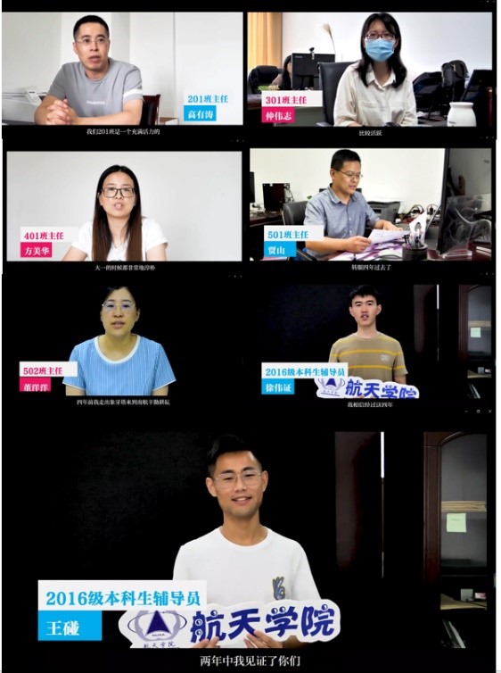典礼在学院老师们的暖心祝福视频中拉开帷幕。视频中不仅有朝夕相处的辅导员们阳光的笑容,更有用专业的指导陪伴了同学们四年的班主任们给与了最真诚的鼓励,鼓励同学们继续发扬航天精神,去更广阔的世界书写自己人生的华美篇章。