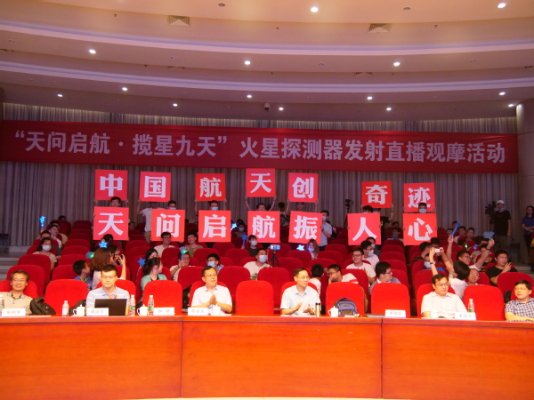 23号中午,我校在将军路校区一号楼四楼报告厅举行“天问一号”火星探测器发射直播观摩活动。校党委宣传部和学院领导、火星信标研制团队成员、师生代表和媒体记者等参加活动,活动在线上平台同步直播。