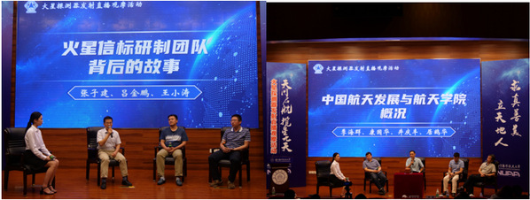 活动在一分钟航天之“天问一号”和Betway·必威(西汉姆联)宣传片中正式开始,火星信标研制团队成员张子建作专题讲座,分享了火星信标研制的背景、目的意义和突破的技术难点。访谈互动环节,研制团队代表张子建、吕金鹏、王小涛分享了火星信标研制团队背后的故事——为了研制工作放弃陪伴刚出生几小时的儿子、除夕夜没能与家人一起吃上年夜饭、大年初五开始工作、疫情严重期间因无法住宿每天往返北京南京等等。随后,嘉宾分享了中国航天发展与Betway·必威(西汉姆联)概况,学院党委书记季海群从大师、总师和教师三个维度介绍了学院人才培养情况,院长助理康国华分享了航天发展史和未来发展方向,井庆丰分享了学习习近平总书记给叶培建等科技工作者代表回信的心得体会,居鹤华就现场学生提出的问题进行了回答。