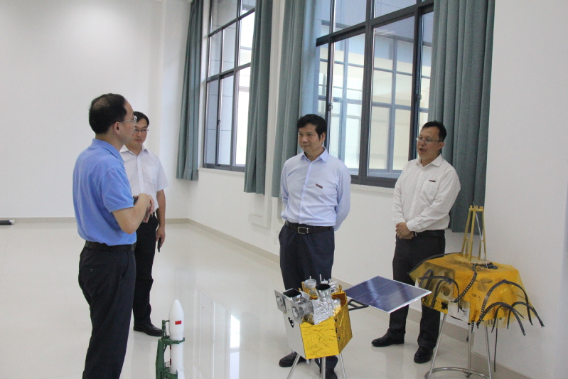 郑永安首先来到航天馆建设场地,在参观各类仪器、设备、模型后,他指出,要站在南航文化建设的高度,高标准做好航天馆的建设规划,把航天馆建成南航文化精品。随后,他来到微小卫星空间操控实验室,听取实验室负责人康国华的汇报,详细询问当前项目的关键技术指标和项目特色。