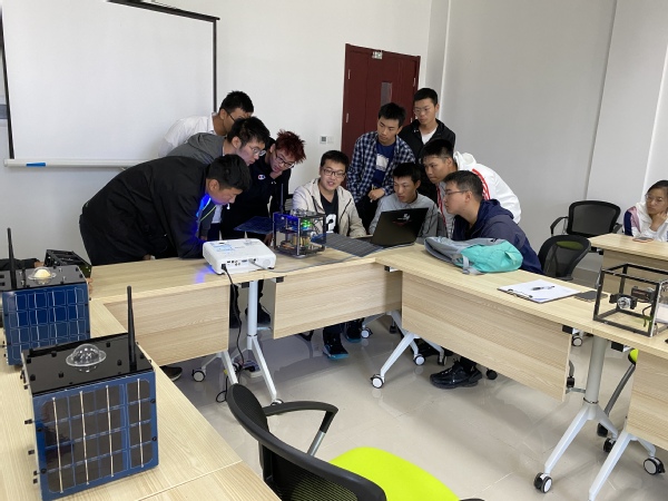 活动过程中,有的学生自己上手组装了桌面事先放置的分解模块,用电脑和自己装好的卫星交互。通过这个动手接触的过程,同学们对各个子系统有初步的了解,也在交谈中提出自己的疑问和设想。