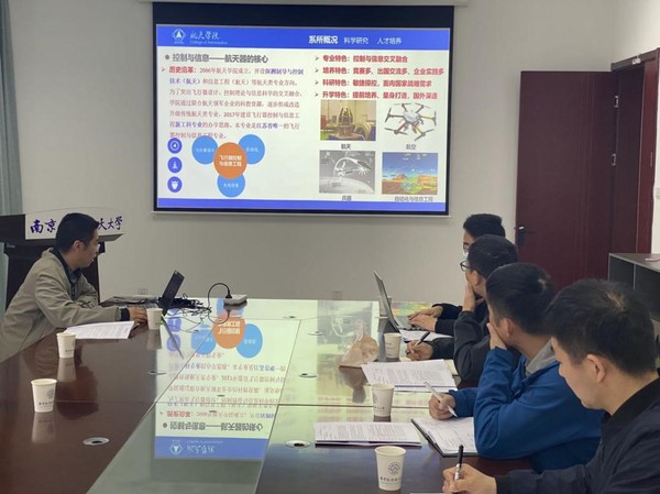 随后,航天控制工程系高有涛老师从控制系基本情况、科研工作、人才培养等多方面进行了汇报,随后双方就航天器动力学与控制、航天器平台与载荷等相关课程建设、实验设置、教学大纲等方面进行了交流讨论。