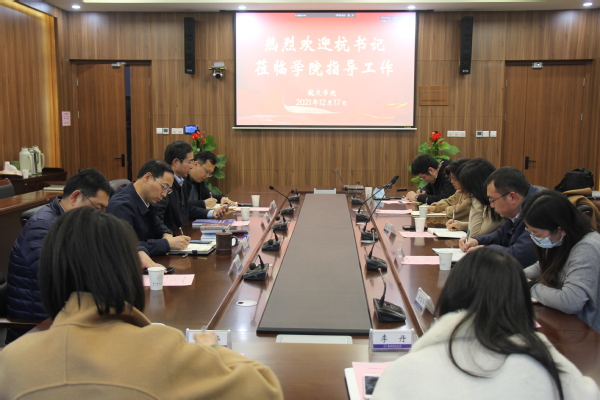 在座谈交流环节,杭育新观看了学院宣传片,听取了学院行政工作和党风廉政建设情况汇报。杭育新充分肯定了学院取得的成绩,同时提出三点工作要求,一是要服务国家重大战略需求,提高在航天领域的影响力,促进学校航天特色发展;二是通过盘活存量、引进增量等多措并举,加强高水平师资队伍建设;三是要加强党建引领,以高水平党建引领学院高质量发展,加强廉政风险防控,推进全面从严治党向纵深发展。