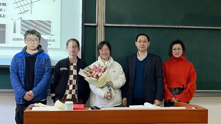 仪式开始,在19级的《信息光学》课堂,以及研究生的《飞行器系统辨识》课堂上,首先,由学院党委书记季海群书记向同学们介绍了施瑶瑶老师、沈海东老师的学习、科研经历,研究方向及相关成果。接下来,季书记为施瑶瑶老师,沈海东老师分别送上学院精心准备的礼物,希望老师教书育人,稳步推进学院教风建设。季书记教导同学们虚心向老师们学习,主动加强与老师的交流,专心学业,珍惜美好的学习时光。另外,季书记还鼓励施老师与沈老师利用课堂,以身作则,多与学生们互动。