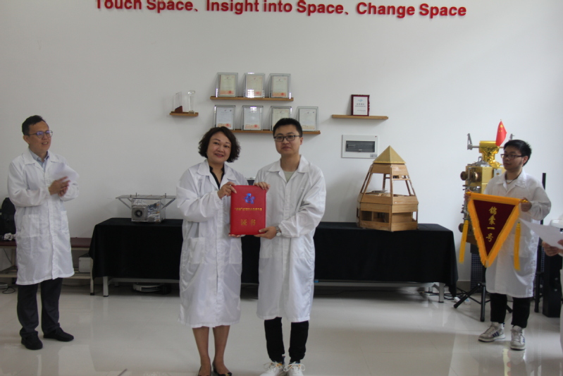 仪式首先播放了 “锦囊一号”空间环境智能管理单元研制过程视频,全面回顾了“锦囊一号”从概念提出到初样、正样研制的全过程。随后,校党委常委、宣传部部长/教师工作部部长王晖向参与研制的研究生代表颁授了“锦囊一号”锦旗和证书,对实验室的创新工作给予了高度肯定,鼓励师生们将成果应用推广。