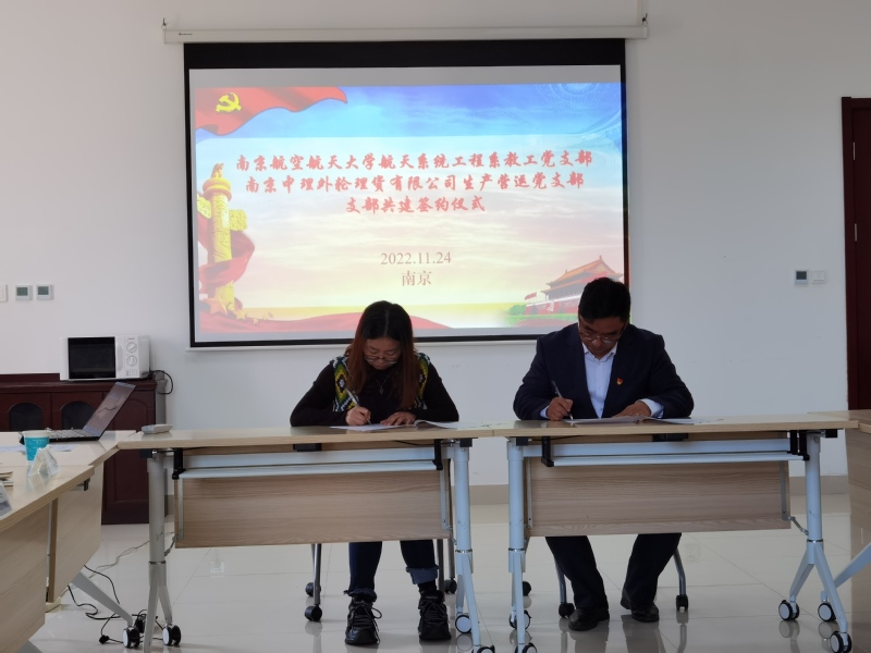 双方党支部负责人介绍支部基本情况,并从智能理货、数字化传递等方面深入探讨了后续可能的产学研合作方向。航天系统工程系支部书记方美华与中理公司生产营运支部书记徐海签署支部共建协议。