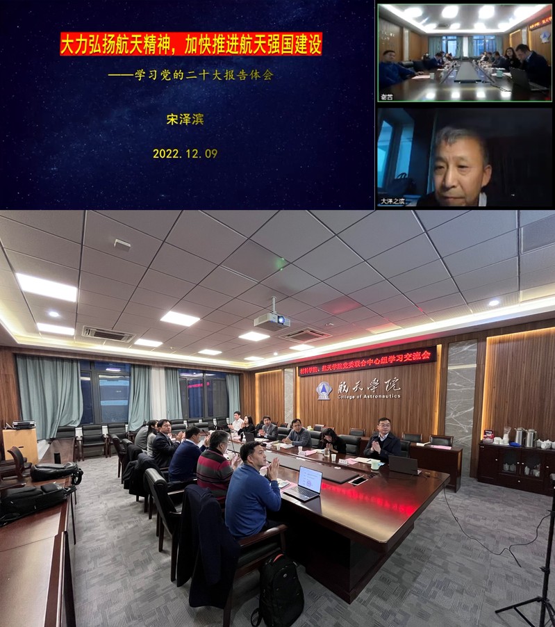 为深入学习贯彻党的二十大精神,大力弘扬航天精神,加快推进航天强国建设,12月9日Betway·必威(西汉姆联)联合材料科学与技术学院举行党委理论学习中心组联合学习交流会。材料科学与技术学院党委书记石勇,院长张校刚,党委副书记庄晓舒,副院长汤晓斌、陶海军、刘周成,Betway·必威(西汉姆联)党委书记孙占久,常务副院长陈金宝,党委副书记林晓,副院长盛庆红、朱旭东、王寅出席会议。会议由Betway·必威(西汉姆联)党委书记孙占久主持。