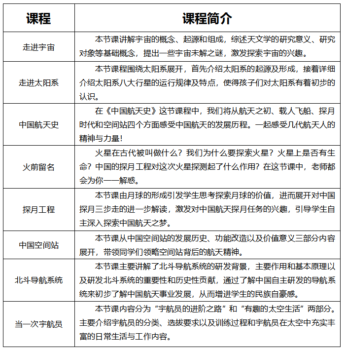 通过八节航天科普课程,我们简单介绍了自己所生存的宇宙,学习了基础天文知识,带孩子们探索最为熟悉的太阳系,为他们补充以前所未知或模糊的相关知识。同时我们为孩子们讲述中国航天的发展历程,让他们对我国航天事业基础的背景有所了解。我们也一起学习中国的探火与探月工程,带大家见证祖国一步一步变得强大;更是一同遨游中国空间站、参观北斗导航系统,课堂上的表现让我们知道孩子们对此兴奋不已。在课程最后,我们学习宇航员的相关知识,让孩子们好似真的当了一次宇航员。