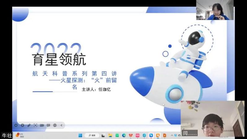 在2022年的年末,我参与了育星领航寒假实践,并且作为河北方面的讲师开展了一节航天科普课程。航天科普一直以来作为Betway·必威(西汉姆联)青年志愿者协会的特色项目,随着开展经验的丰富,项目组织的完善,育星领航这一项目也取得了越来越大的社会效益。作为一个参与三年实践的航天科普人,从负责人到组织者,而今再次回到课堂上作为讲师,又是完全不同的一种体验。课堂上孩子们以稚嫩口吻提出的问题,对于课堂知识富有创造力的思考都给我留下了深刻的印象,也切切实实感受到我们开展项目的意义所在。对于一些地区,航天知识对于孩子们就像天上的星辰,可望而不可及,而我们所做的就是打破地域时空限制,构建起桥梁,撑起孩子们探索星辰大海。在课程结束后,与孩子们的交流中,看到孩子们提出的独特思考,对于已经步入大学的我们也是别有感触,我们更确定我们所做的一切是值得的。