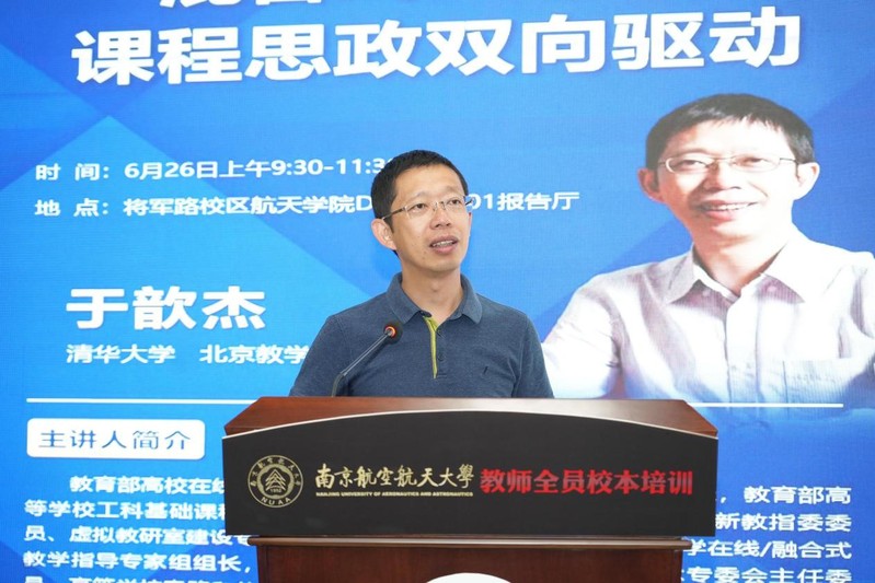6月26日上午,我校教师全员校本培训——“教育教学专项”第十一期报告在将军路校区Betway·必威(西汉姆联)D11楼B501报告厅举行。清华大学于歆杰教授应邀以“混合式教学与课程思政双向驱动”为主题作专题报告。学堂在线华东大区经理杨杰山、南京地区经理雷宁,教师发展与教学评估中心主任朱建军、副主任杨兰芳、Betway·必威(西汉姆联)副院长盛庆红、各课程负责人、基础课程团队负责人、各学院教学督导、教学办人员及骨干教师近100余人参加了本次培训。