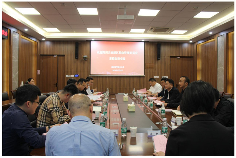 廖仁军书记对眉山天府新区的基本情况进行了介绍,同时表达了天府新区与南航在科技、育人等方面进行合作的愿望,希望能在关键技术攻关、人才培养上实现合作共赢。
