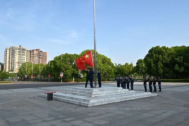 清晨,升旗仪式在庄严的氛围中拉开帷幕。全体成员整齐列队,伴随着雄壮的国歌声响起,大家齐声高唱国歌,庄严注视着国旗冉冉升起,表达了对祖国的无限热爱和崇高敬意。