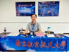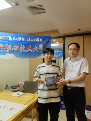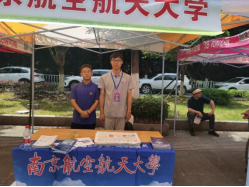校长助理、党政办公室主任张启钱为考生答疑并赠送南航文创