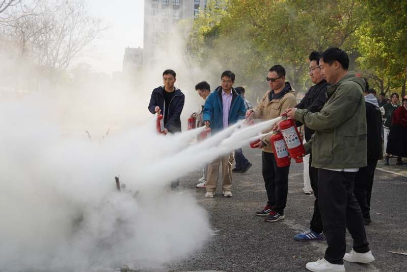 下午2时30分,随着消防警报响起,演练正式拉开帷幕。参演师生员工沿疏散通道快速有序撤离至指定安全区域,各岗位人员协同配合完成火场警戒、人员引导等规范动作,疏散过程紧张有序,达到了预期效果。疏散结束后,学院组织相关实验室师生开展灭火器实操培训,经过保卫处同志的培训和指导,参训人员通过油盆灭火等科目掌握了初期火灾扑救技能。