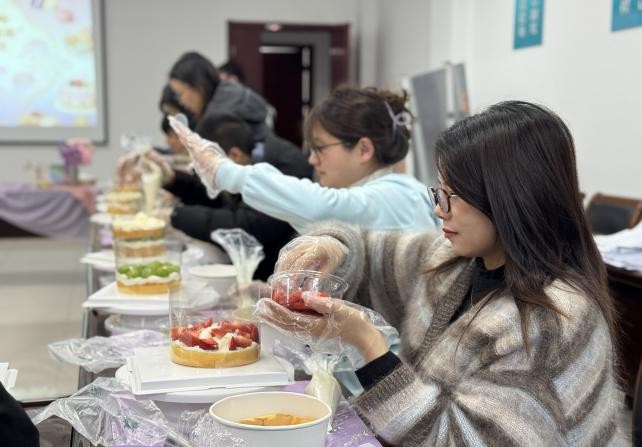 本次活动精心设置了宋锦钥匙扣制作、蛋糕烘焙两个环节,兼顾传统韵味与生活乐趣。活动现场,教职工们热情高涨、积极参与,将传统宋锦的雅致与现代审美相结合,尽情享受亲手烘焙的乐趣,阵阵香甜萦绕现场,欢声笑语不断,处处洋溢着春天的生机与暖意。
